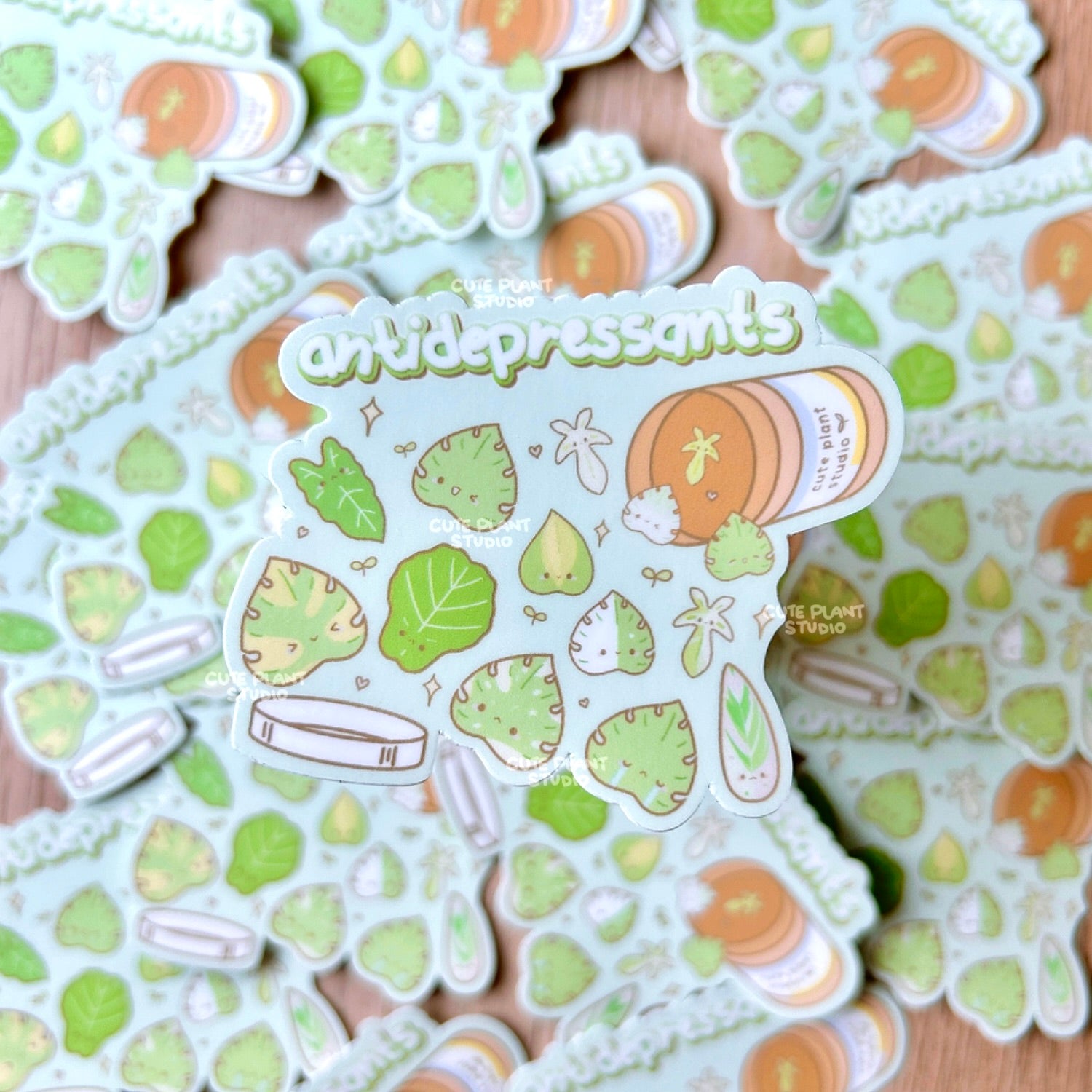 This fun-filled sticker is a love letter to healing: whether you're in therapy, taking meds, or simply doing your best to get through. Featuring a tipped-over bottle spilling out cheerful leafy friends, it's a gentle, validating reminder that there’s no shame in the tools we use to feel okay. Printed on waterproof, weatherproof, PVC-free vinyl with eco-friendly inks, it's made to stick by your side wherever you go. 2.4 x 2.7" in size (approx. 6.1 x 6.9 cm).