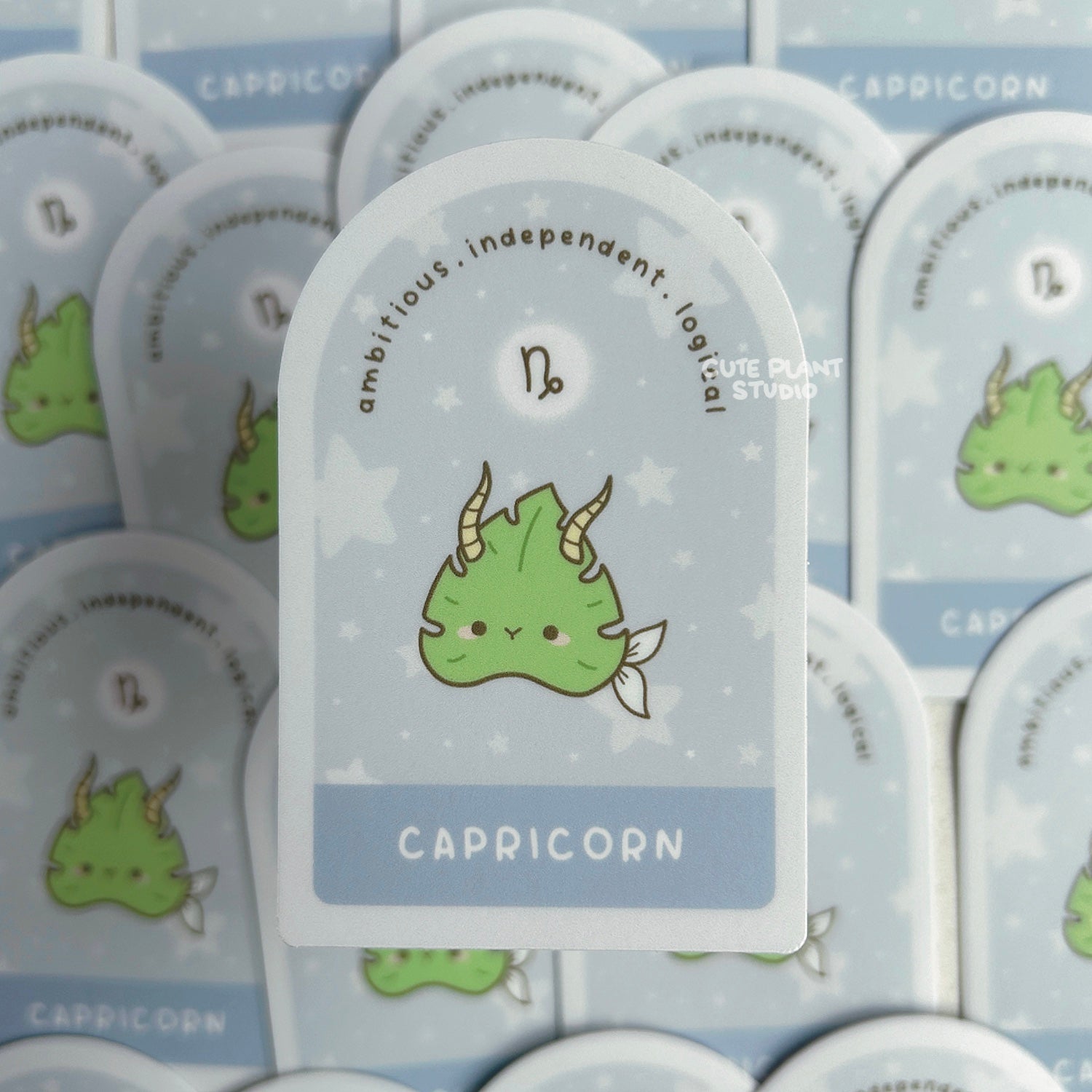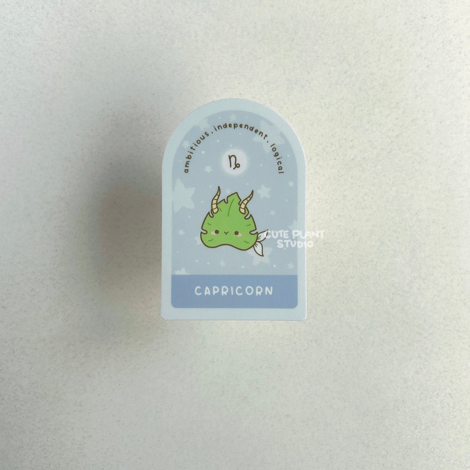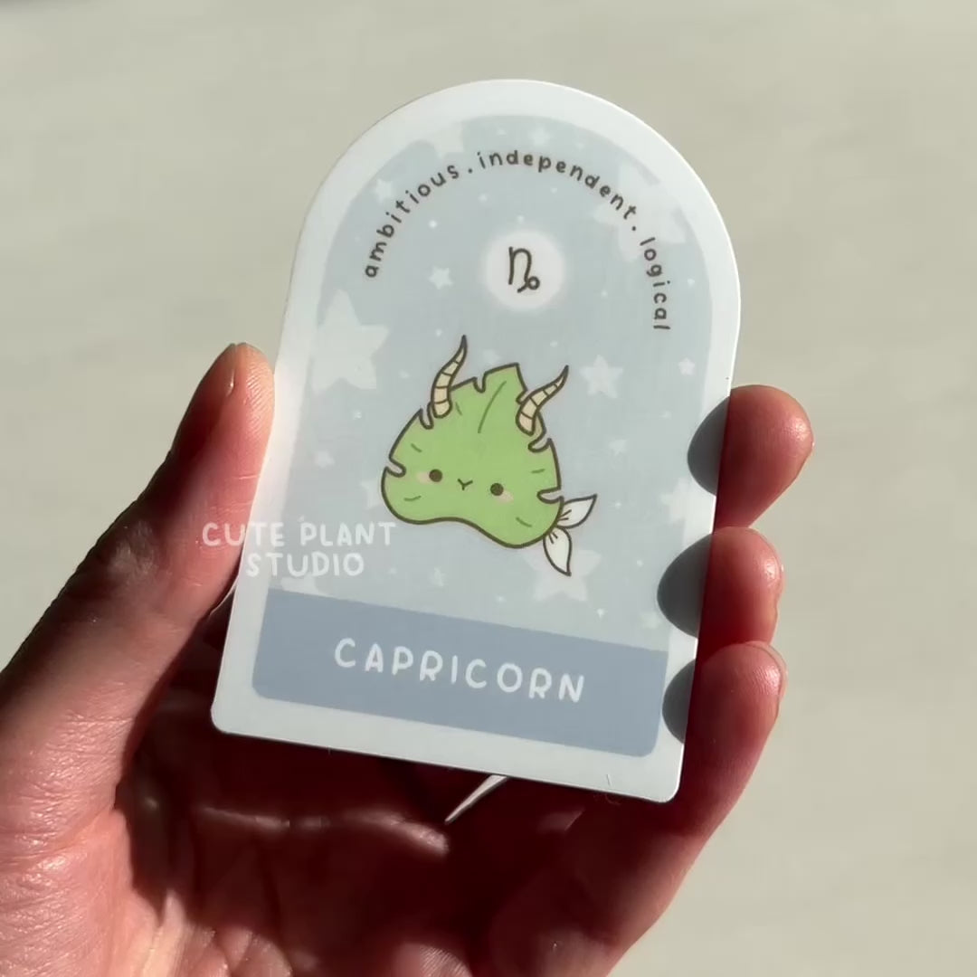 Ambitious and determined, our leafy Capricorn is climbing towards success as a cute little goat. This eco-friendly zodiac sign sticker is approximately 3" (7.6cm) tall and is a fun way to express your horoscope pride! Durable, scratch-resistant, and waterproof, it's perfect for laptops, water bottles, or journals. A unique gift for houseplant parents and astrology fans alike!