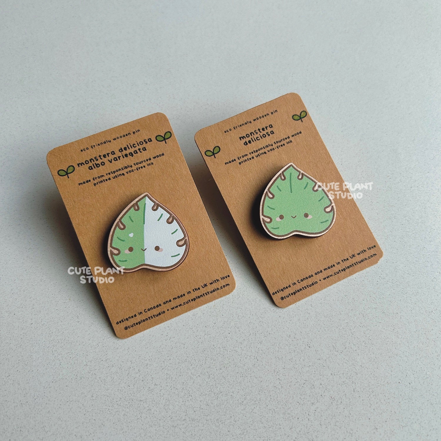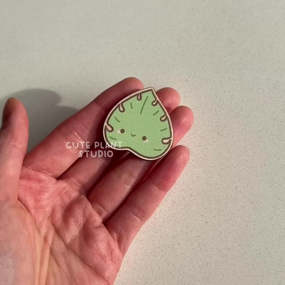 Show off your love for houseplants with this timeless wooden pin featuring our cute monstera leaf character. Measuring 35mm (approximately 1.4 inches) in diameter, this charming pin is a perfect blend of cuteness and plant-inspired design. Whether you’re decorating your favourite jacket or accessorizing a plant-themed tote bag, this pin is a subtle and sustainable way to share your plant passion!