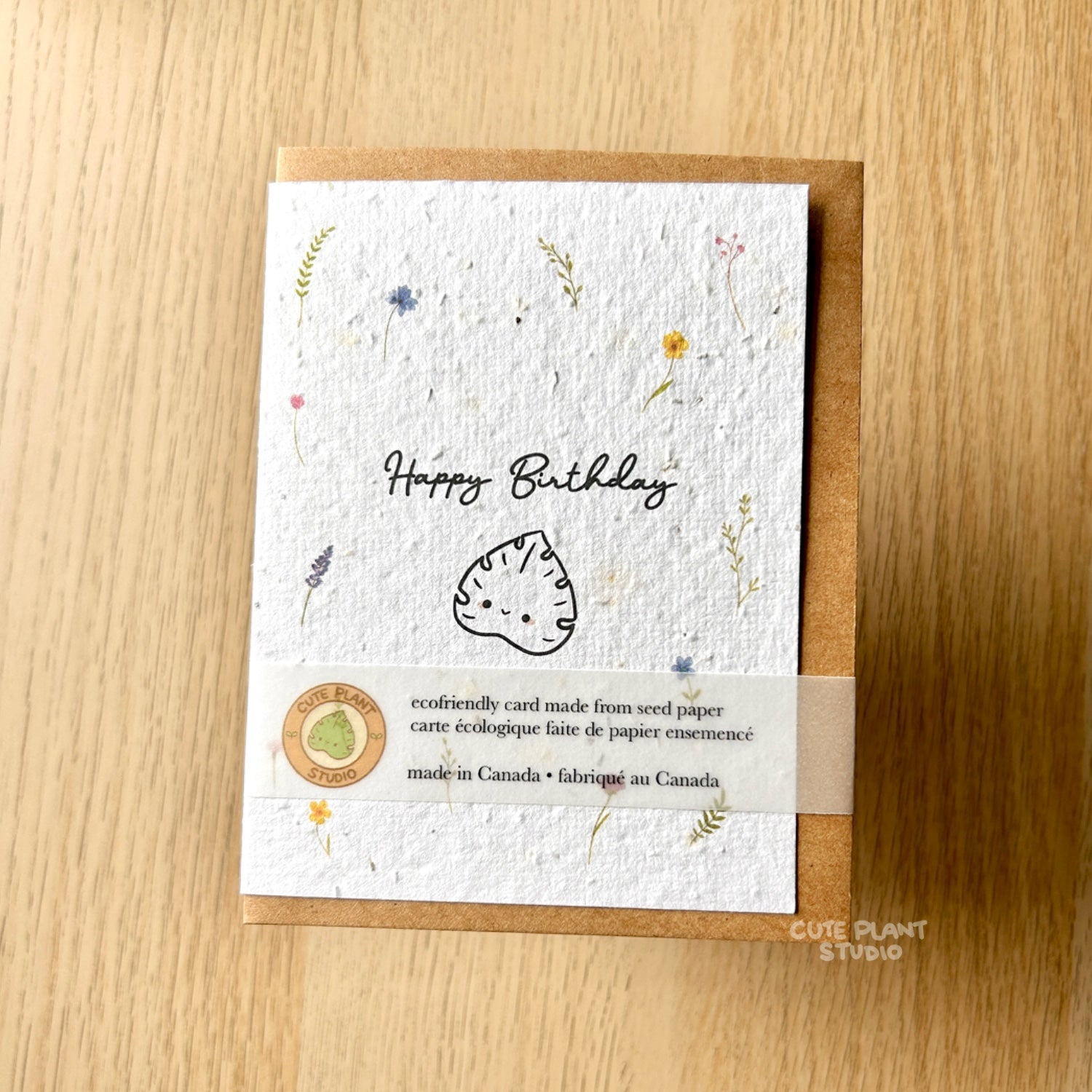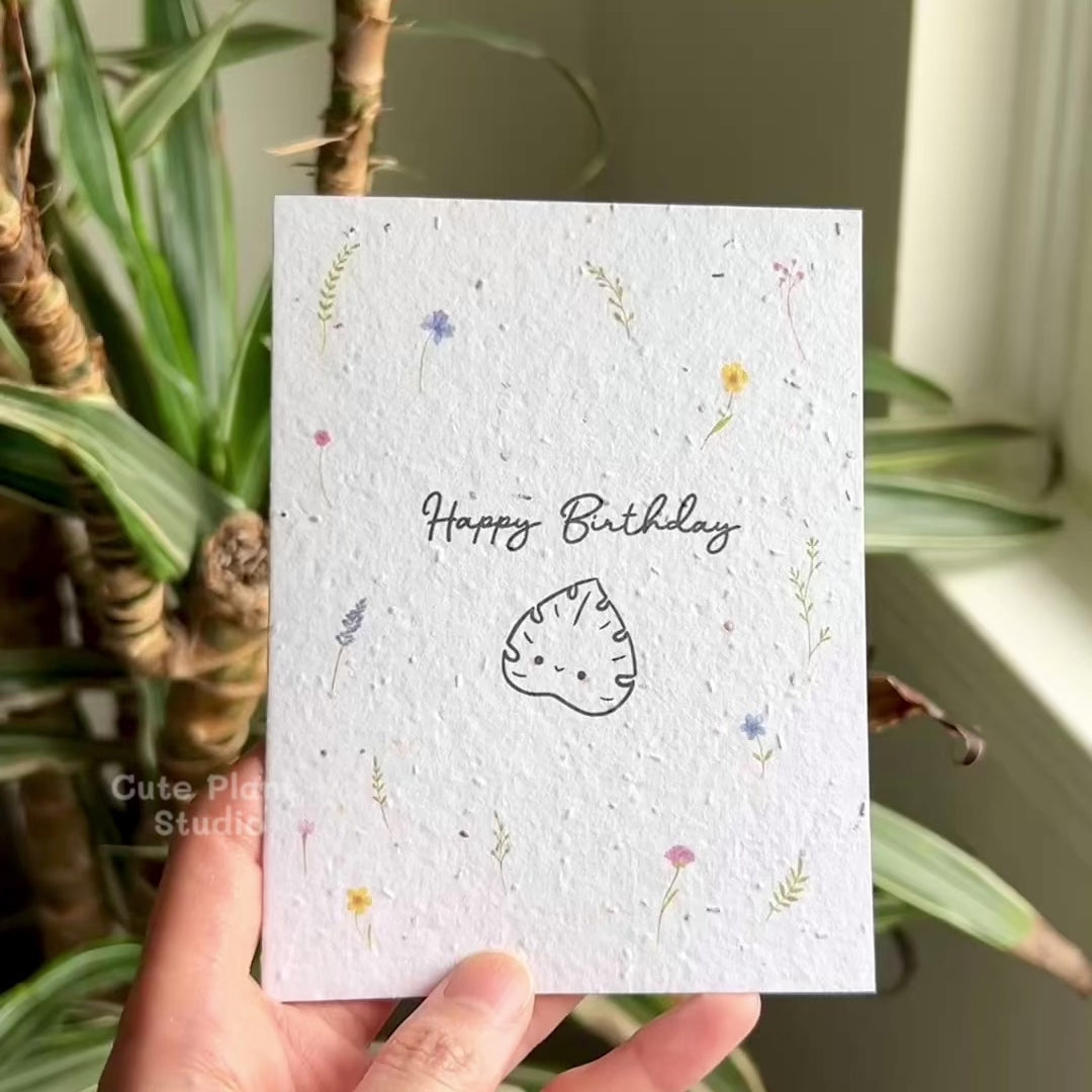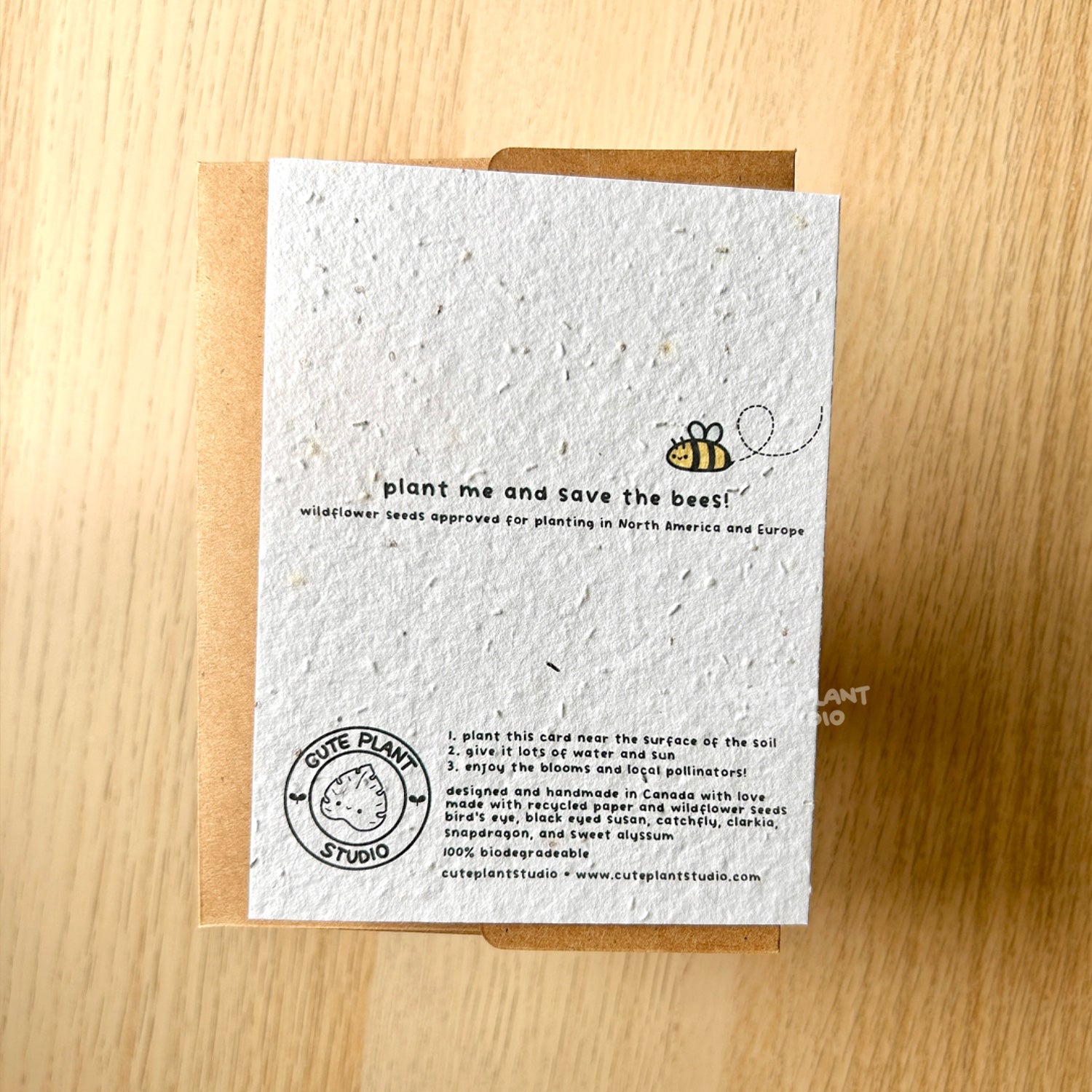 Each card features illustrated pressed flowers and your favourite monstera friend in a sweet little moment that matches the occasion. Printed on biodegradable wildflower seed paper, these cards not only send a message, but also grow into something beautiful. A soft, minimalist design makes each one feel warm and intentional, whether you're expressing thanks, celebrating growth, or just sending a leafy hug. Each card comes with a kraft paper envelope and grows wildflowers when planted; because your words should bloom long after they're read. Standard A2 cardstock size (4.25 x 5.5" when folded).