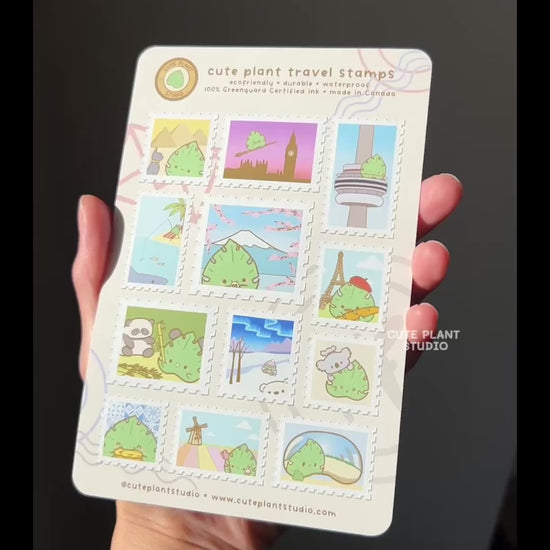 The cute little leaf travels the world! Collect them all in this one sticker sheet. Made with ecofriendly inks and printed on durable waterproof vinyl. 4 x 6" large (approx. 10 x 15 cm)