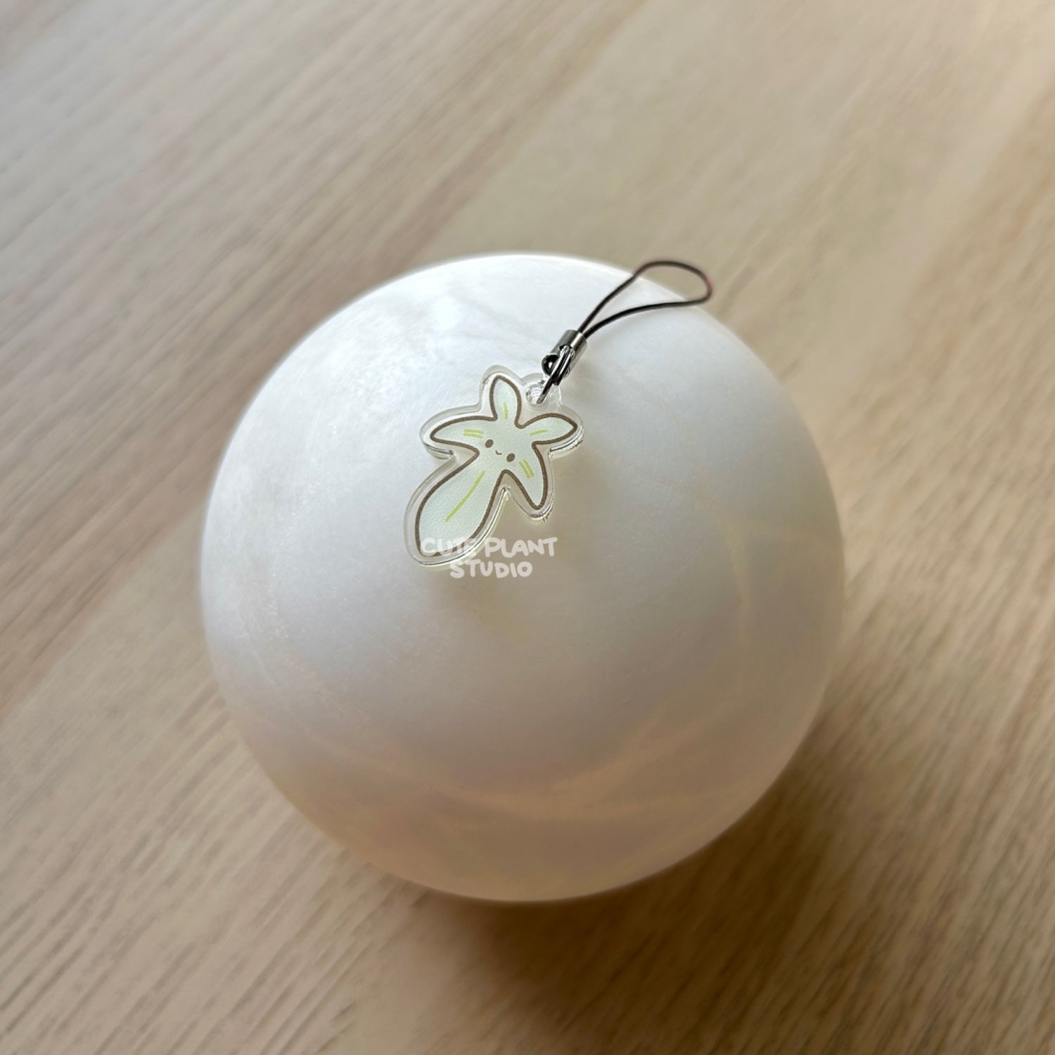 BOO! Do you love the ghost? This adorable phone charm features our beloved philodendron ghost design. It's made from 100% recycled acrylic, diverted from landfills and incineration, so you can accessorize sustainably. Whether you’re a proud plant parent or just a fan of all things green and cute, this phone charm is perfect for adding a touch of botanical charm to your everyday essentials. The acrylic piece is about 1" inches (2.5cm).