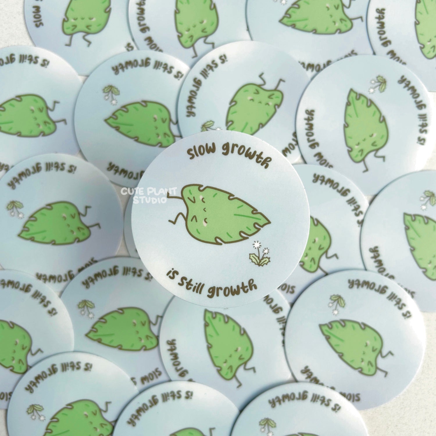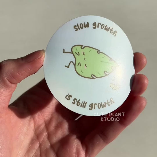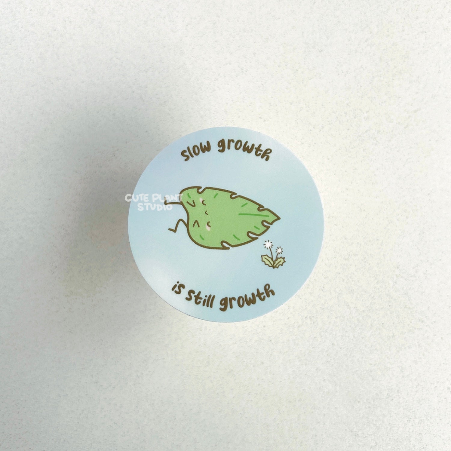 Celebrate progress with our peaceful little leaf, lying down with a soft smile. This sticker reminds you that growth takes time, making it a great self-care gift for plant lovers. Perfect for water bottles, laptops, or journals, this eco-friendly sticker is scratch-resistant, waterproof, and weatherproof. Sticker is approximately 2.5" (6.35 cm) in diameter.